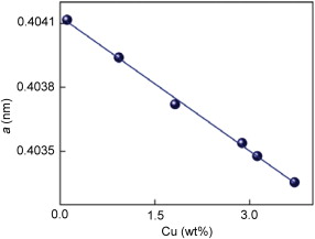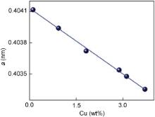 | Fig. 11. Lattice parameter at 25 °C depending of the Cu concentration in Al. |
