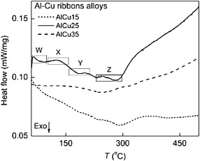 | Fig. 13. DSC curves of Al–Cu alloys with 15, 25, 35 wt% Cu obtained by MS-LP. |