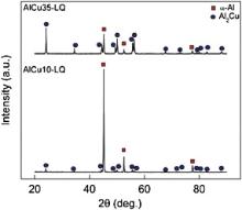 The liquid quenching of Al–Cu melts was realized by using a self-designed melt spinning device. The estimated cooling rate corresponded to 105–106 °C/s. The cooling rate value ( v) for the modified melt spinning device was estimated based on the relation d = A· v- n [20], where d is the secondary dendrite arm spacing (SDAS), A and n are constants.