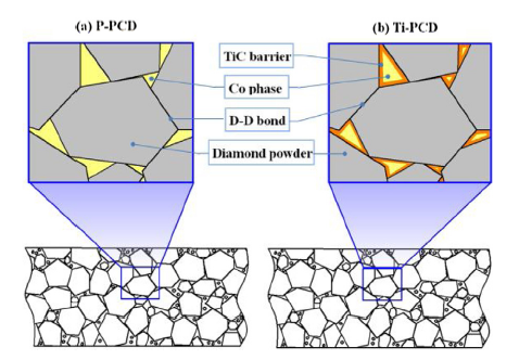 Fig. 11. Schematic diagram of the PCD structures: (a) P-PCD; (b) Ti-PCD.