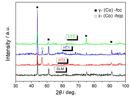 As-cast CoCrMo alloy has two phases: γ-FCC phase and ε-HCP phase, which are stable at low and high temperatures, respectively. Heat treatment can be employed to improve the mechanical properties via altering both the volume fractions of the two distinct phases and tuning microstructural features such as grain size, orientation texture, and second phase precipitation [[12], [13], [14], [15]]. The transition from γ-FCC phase to ε-HCP phase would have a significant influence on mechanical and wear properties [16,17]. Several studies have reported that the formation of hexagonal ε phase caused the increase of wear resistance for Co-based alloy [13,16,18] despite the inherent HCP brittle behavior compared to the FCC phase.