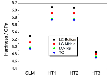 SLM often produces severe residual stress gradients due to its unique thermal cycle of rapid melting, cooling, and melt-back, which may deteriorate part performance and even lead to microcrack or part distortion. Therefore, post-heat treatment to relieve residual stress and tune the microstructures and mechanical properties are required. On the other hand, the presence of residual stress in the high density of dislocations may significantly affect the hardness and wear resistance. Therefore, appropriate heat treatment should be chosen for specific applications.