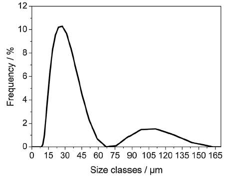 The material used in this study is CoCrMo alloy power (BEGO, German) with the chemical compositions (Table 1). The SEM morphology (Fig. 1) shows nearly spherical powders with some satellites on the particle surfaces. The distribution of particle size (Fig. 2) was characterized by a laser particle size analyzer with the particle size distribution of d10 = 17.1 μm, d50 = 30 μm, d90 = 155 μm based on volume distribution. This shows that 10%, 50% and 90% of the particle size distributions are less than the nominal diameters, respectively.