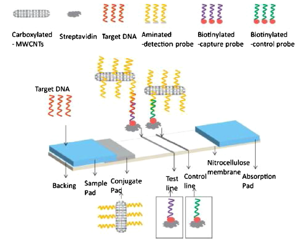 ... Principle illustration of MWCNT-based LFB for the detection of DNA sequence. (Reprinted with permission from [142] Copyright 2014 Elsevier B.V.).