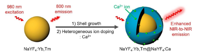 Schematic illustration of the process of synthesizing Ca2+ doped core/shell UCPs. (Reprinted with permission from [79] Copyright 2018 Elsevier).